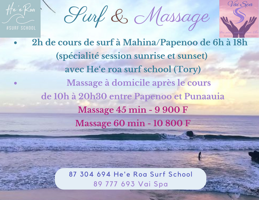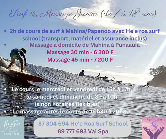 Surf & massage Junior (7 à 18 ans) avec He'e roa surf school